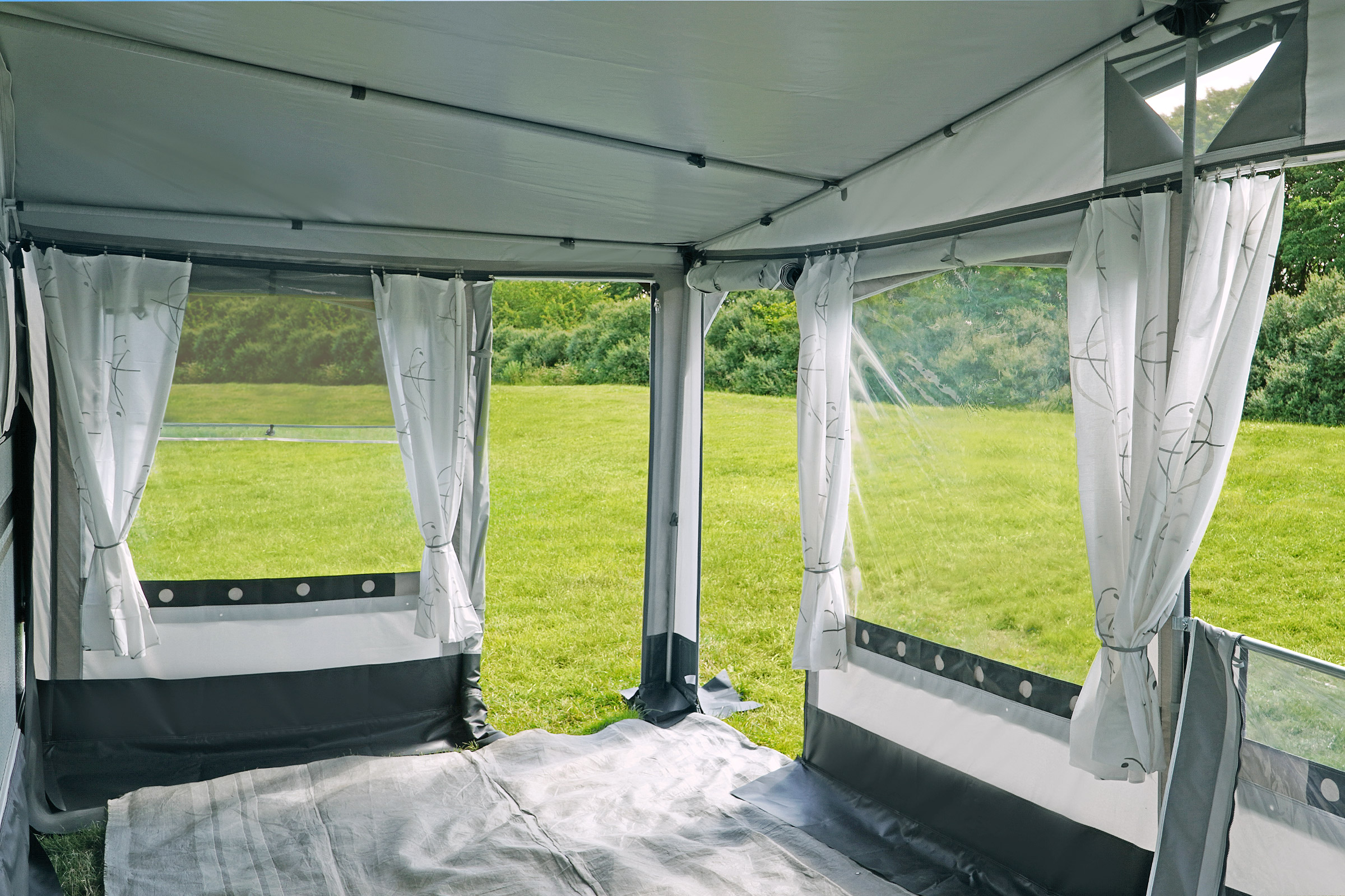 Hohlsäume im Vordach zur Aufnahme der Vordachspannstangen